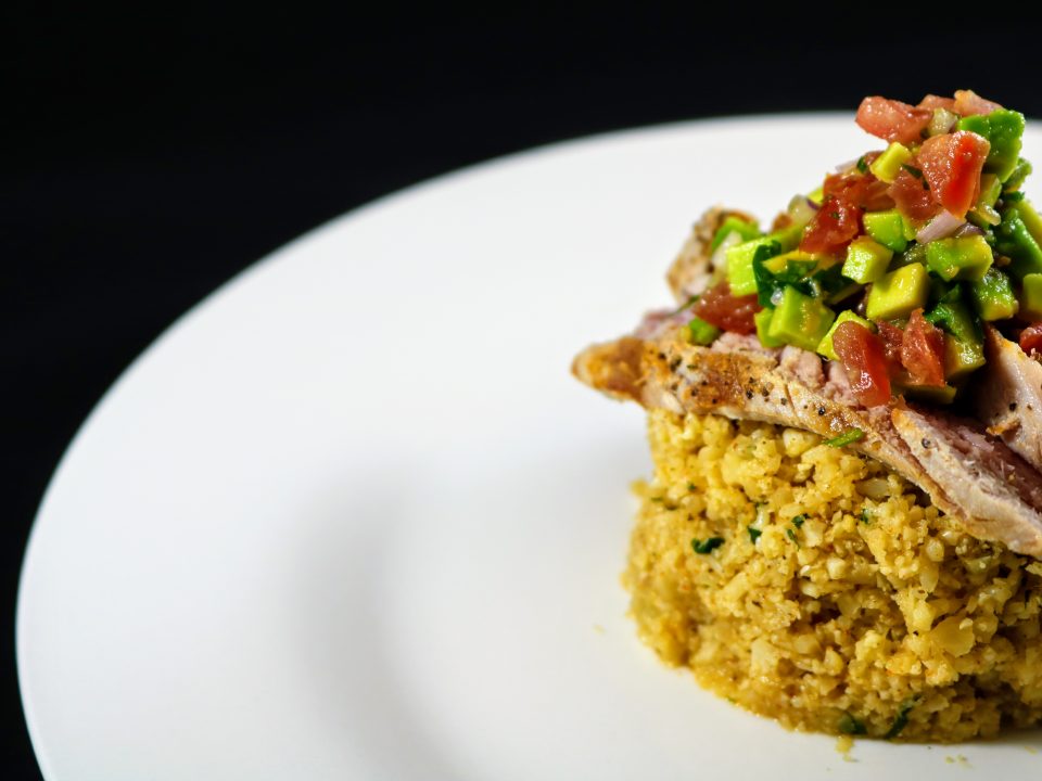 Seared Tuna with Avocado Salsa and Fried Cauliflower “Rice”