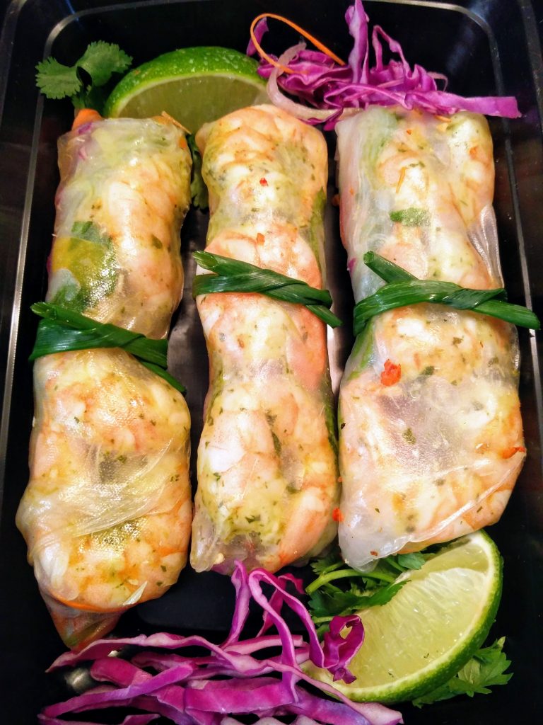 Lemongrass Marinated Shrimp Spring Rolls and Vegetables