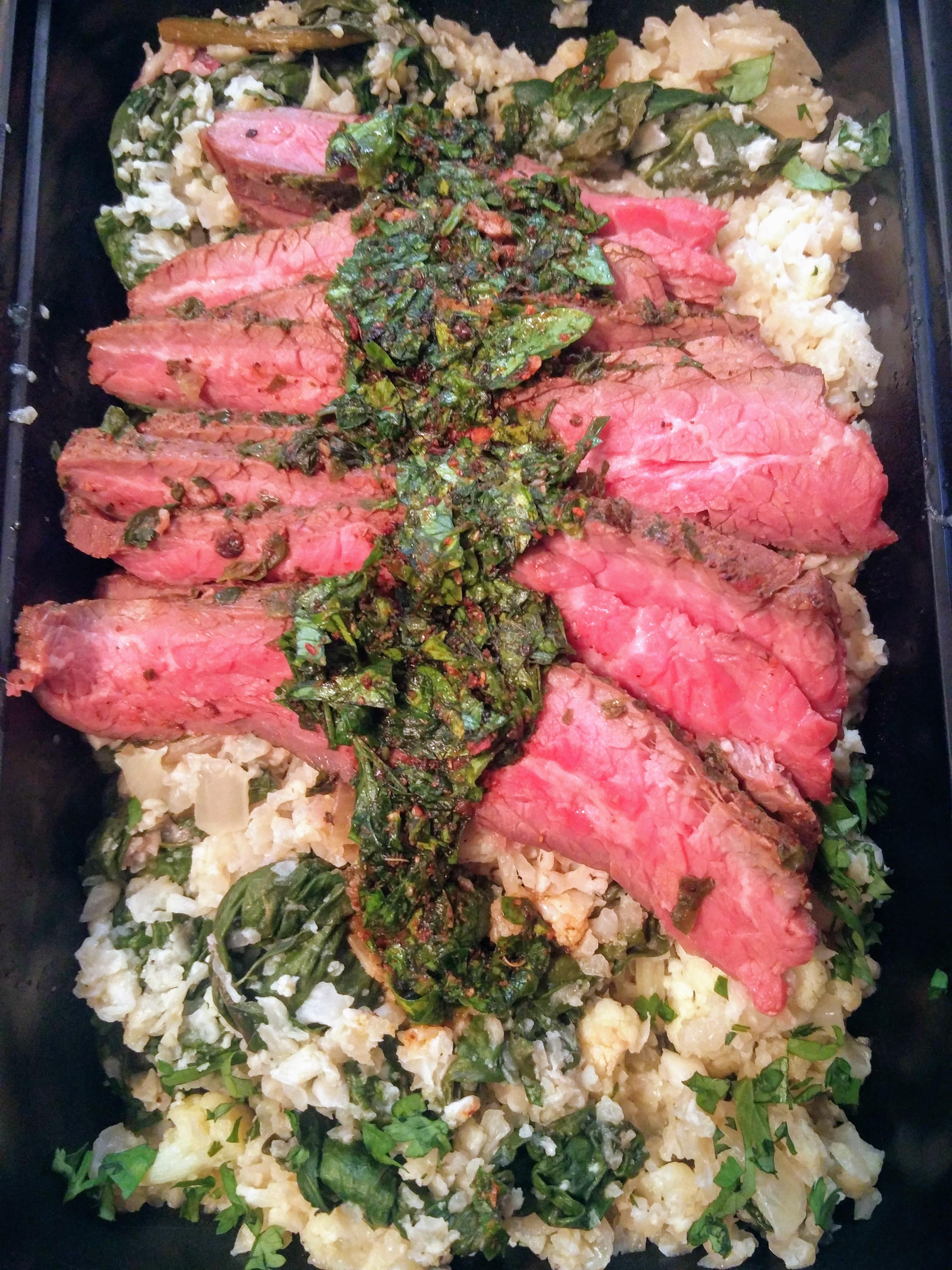 Chimichurri Flank Steak with Cilantro-Lime Cauliflower “Rice”