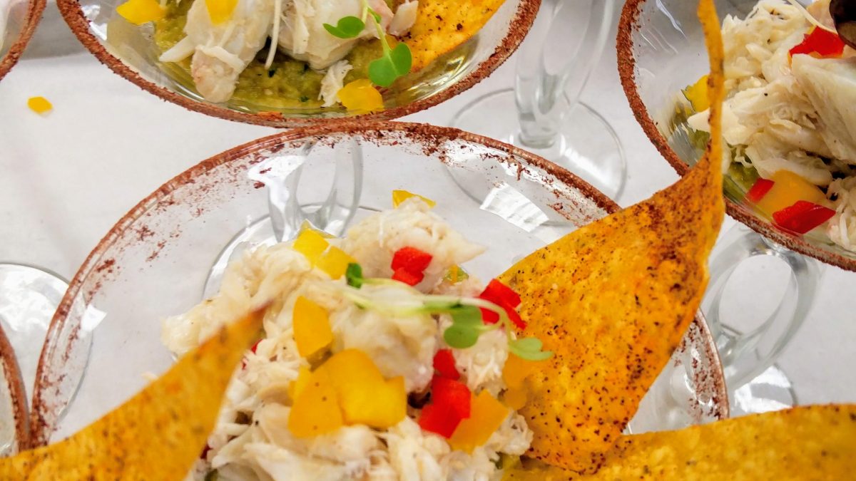 Crab Margarita (Crab Marinated in Tequila, Lime, and Triple Sec) with Guacamole and Chipotle-Lime Chips