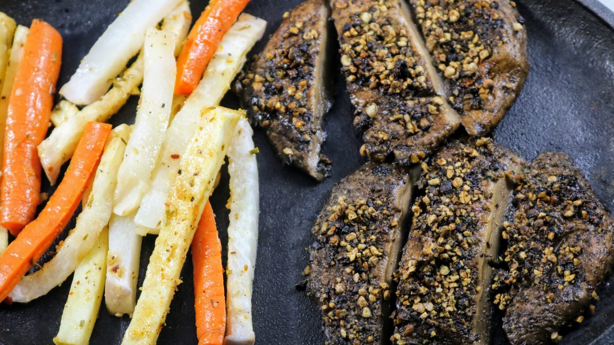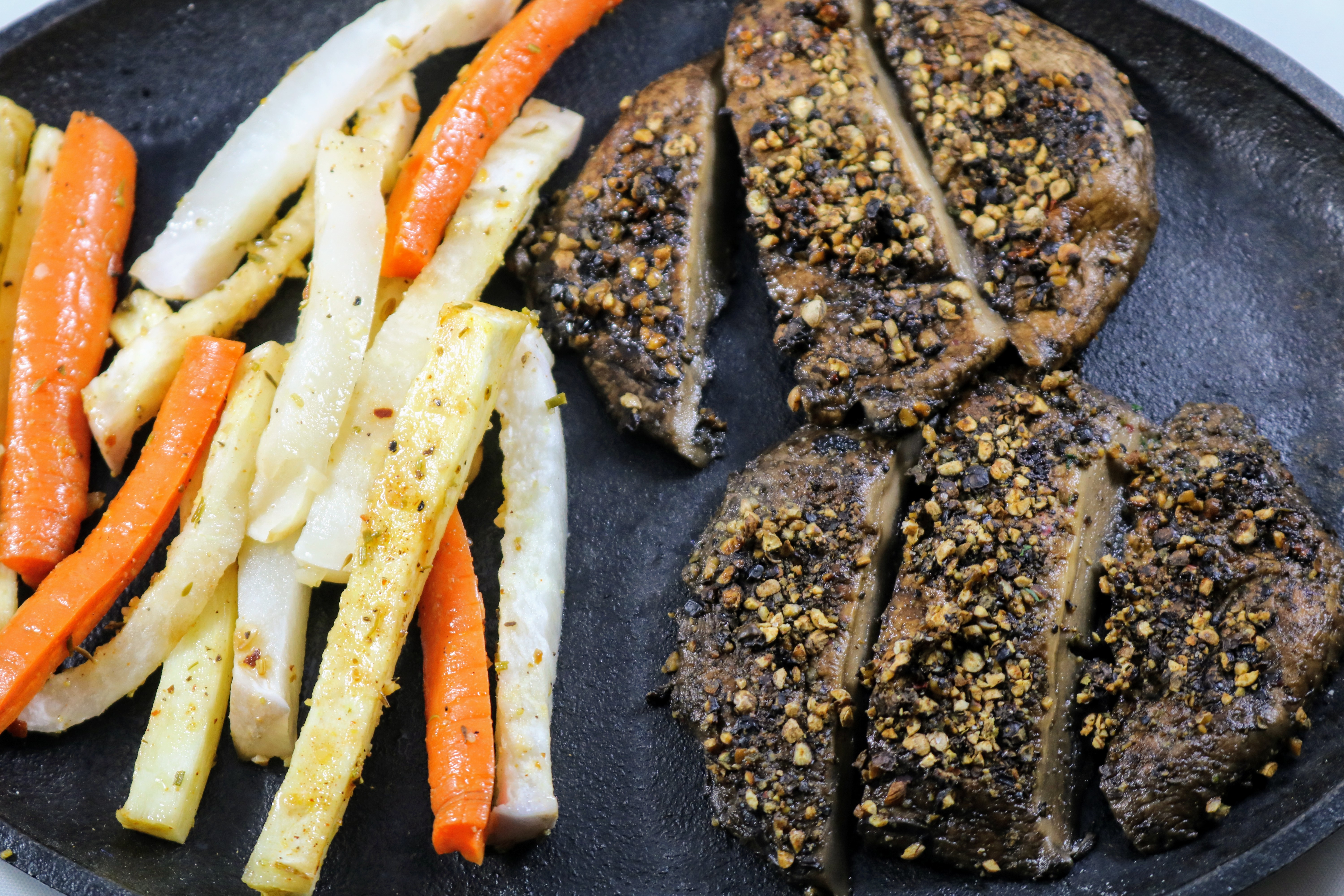 Peppercorn Crusted Portobello “Steak” and Vegetable “Fries”