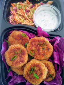 Red Thai Curry Crab Cakes with Asian Slaw